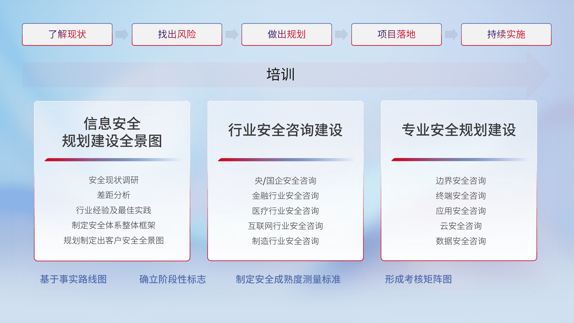 梳理客户信息安全现状调研、、、、差距分析结果,,,,结合行业先进经验及最佳实践,,制订客户的信息安全管控体系总结架构,,,,最终形成一个完整的客户信息安全规划与建设的全景图。。。
