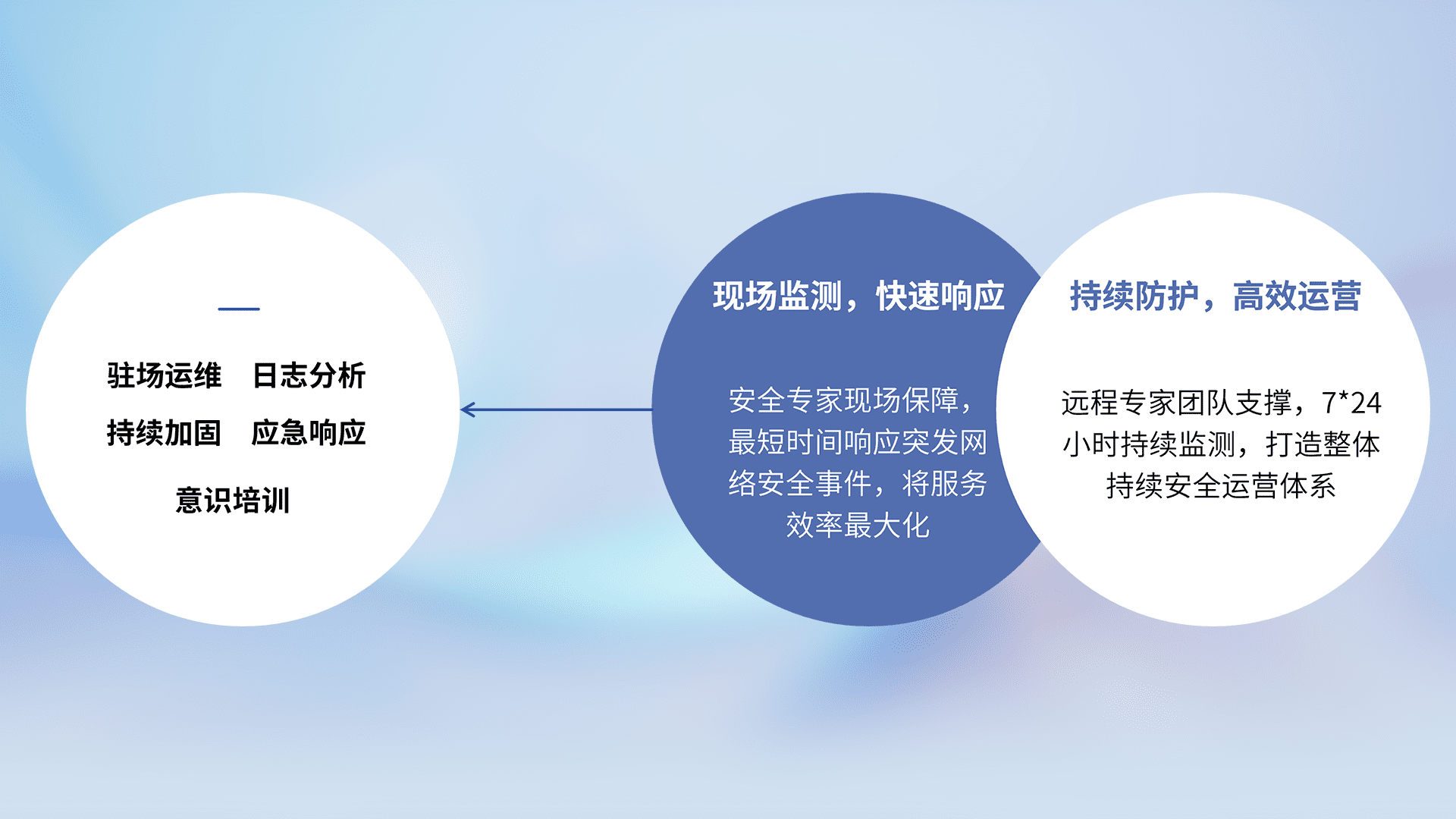 针对客户行业特性,,,提供专属的一站式安全管理服务,,,帮助客户全面感知网络空间威胁,,,,通过安全专家的线上、、、、线下防护支持,,实现风险闭环,,,,将安全保障常态化,,,,为客户打造常态化安全运维运营服务。。